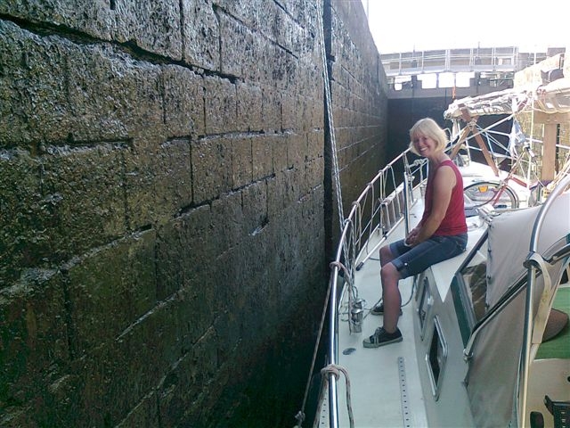 Wir sind wieder unterwegs! Allerdings beschleicht uns ein seltsames Gefühl, als schon nach 1,8 km bei der zweiten Schleuse des Tages wieder Schluss sein soll: Zu wenig Wasser im nächsten Abschnitt! Aber wir verweisen auf unseren Schwenkkiel und nur 1,2 m Tiefgang und damit läßt uns der Typ von der Kanalgesellschaft passieren. Und dann wirds noch richtig schön. Wir reduzieren unsere Methode des Festmachens in der Schleuse auf nur noch eine Leine an der Mittelklampe und haben die halbe Arbeit gespart. Nach 11 Schleusen und 20 km erreichen wir Corre.