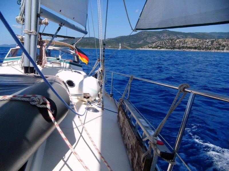 unter Segeln auf die Südseite des Golfs