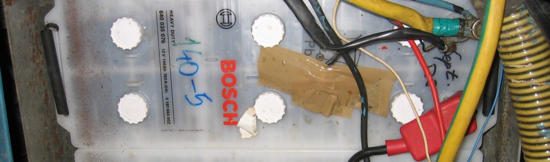 Die Starterbatterie mit 12 V / 140 Ah wird über einen DC/DC-Ladewandler von der 24 V-Seite geladen. Die zweite Lichtmaschine mit 12 V hab ich rausgeschmissen, weil sie wegen der tiefen Einbaulage praktisch nicht zugänglich war für Keilriemenspannung o.ä. Jetzt, wo ich dabei bin, die Amateurfunk-Kurzwellenanlage samt Pactor (alles 12 V) einzubauen, spiele ich wieder mit dem Gedanken, doch eine weitere 12 V-Lichtmaschine anzuflanschen. Es gibt schon viel zu viel kleine und große DC/DC-Wandler von 24 zu 12 Volt, im ganzen Schiff verteilt.