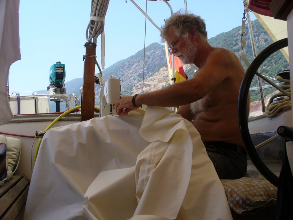 Segelmacher bei der Arbeit